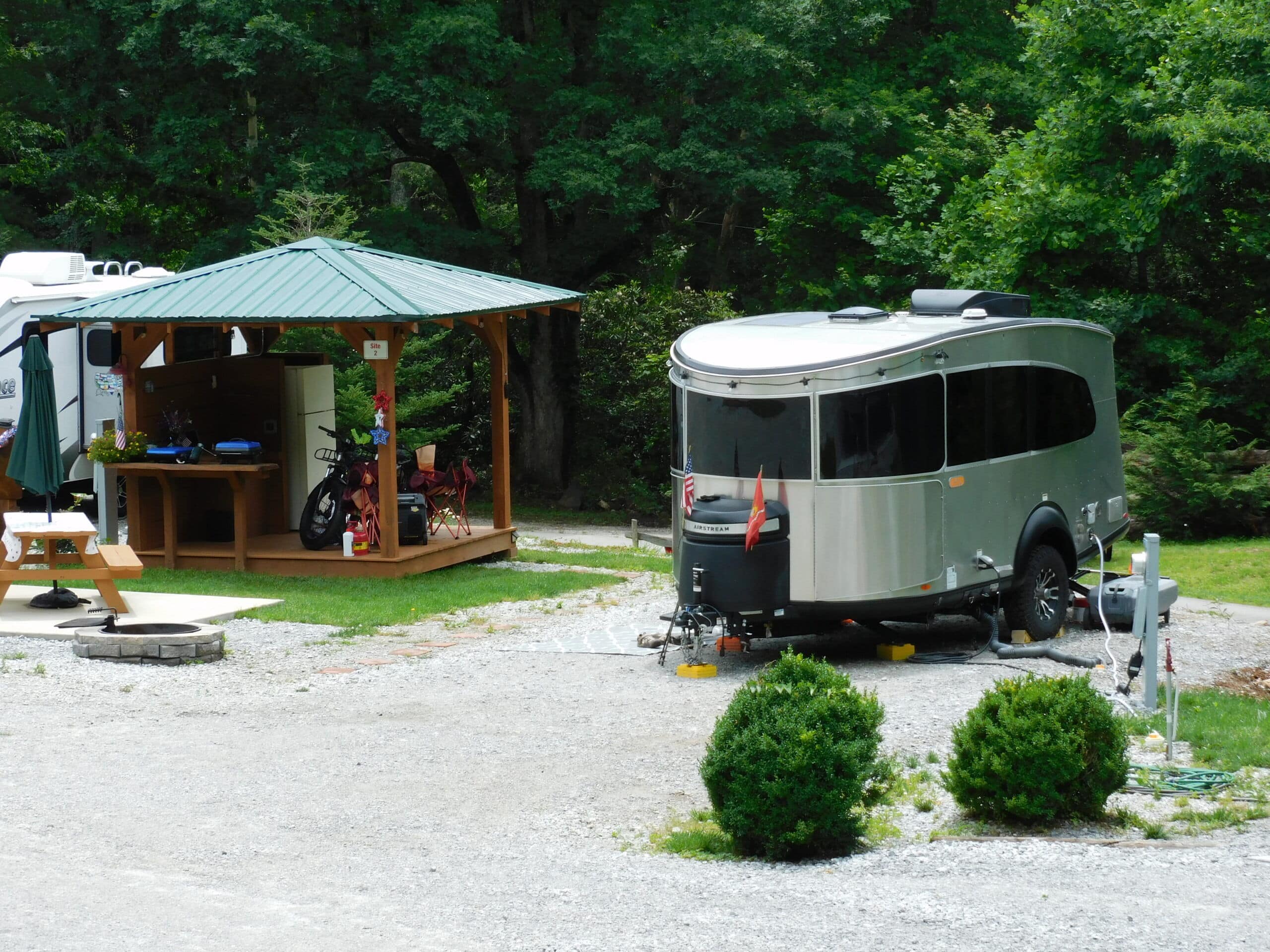 Early morning sun warms your site as you have breakfast and prepare to venture out for a day of fun and adventure. “The Sunrise Sonata” is listed as one of our premium sites. A private gazebo with sink and running water, refrigerator with ice maker, picnic table and fire ring are all included. When you find yourself looking to go RV Camping near Franklin NC, “The Sunrise Sonata” at Deer Springs RV Park is a wonderful choice.
